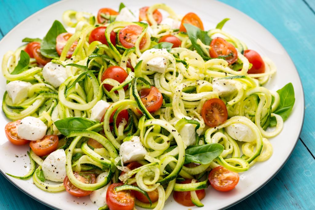 So today I decided to give the traditional Caprese salad a zucchini noodle boost, resulting in this delicious zucchini noodle Caprese.